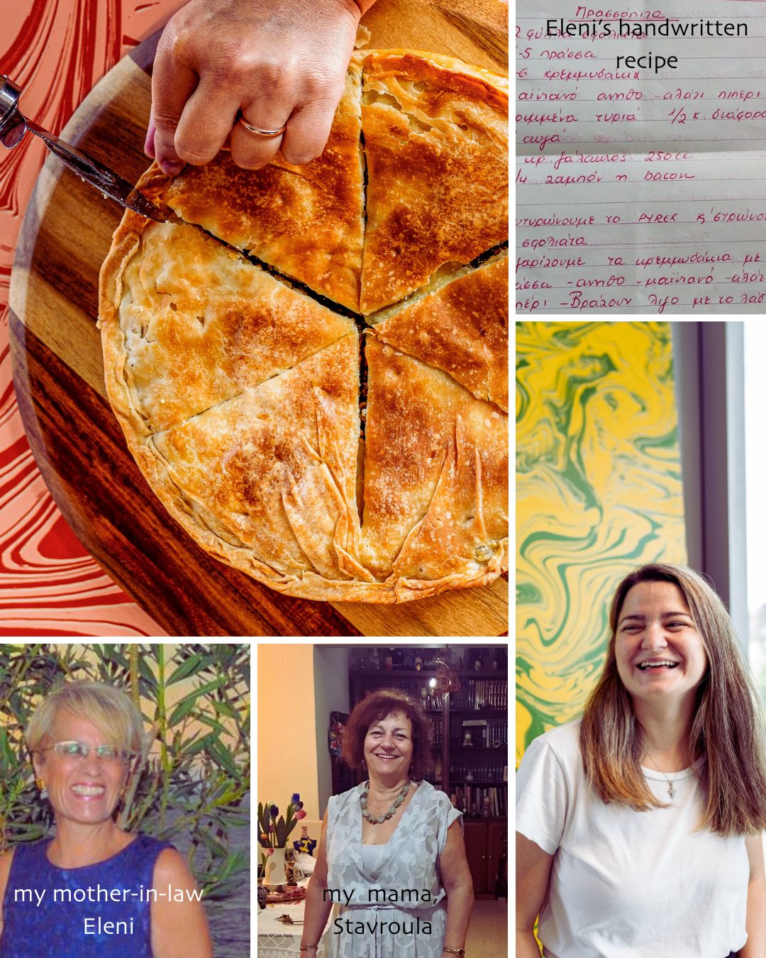 Years later, living in London and longing for the taste of home, I was inspired to recreate my mother's spanakopita (spinach pie). This craving led me to the idea of starting my own Greek pie shop. The journey was further influenced by my late mother-in-law Eleni, whose leek and bacon pie recipe became a cornerstone of my bakery.
